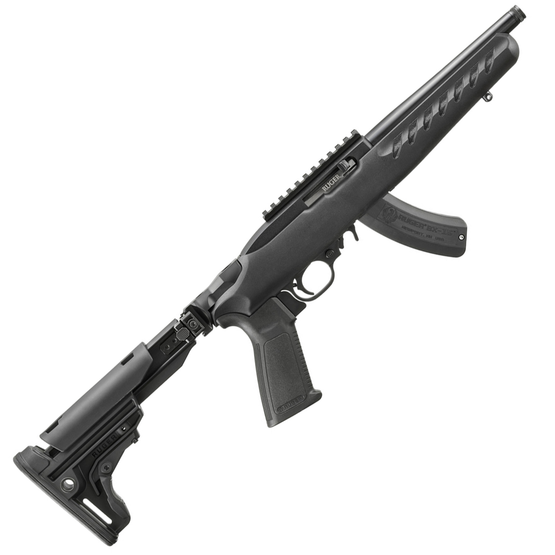 Ruger 10/22 22LR 8″ TB Short Barreled Rifle; Black BX-Trigger; Pistol Grip; Reversible, Folding Stock; Push Button, Cross Bolt Manual Safety; Picatinny Rail; 1x15rd Magazine Class 3 NFA