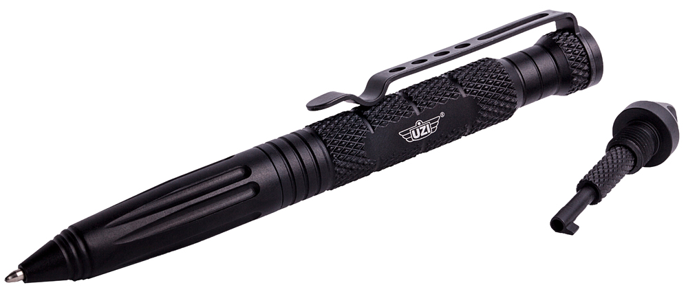 The Defender Tactical Pen is made of heavy-duty lightweight aircraft aluminum and features an ultra-durable carbide tip glass breaker and built-in cuff key. Screw out the rear end glass breaker to reveal the secret hand cuff key, compatible with most professional handcuffs. Tried and tested, UZI Tactical Pens are both stylish and able to withstand a beating.